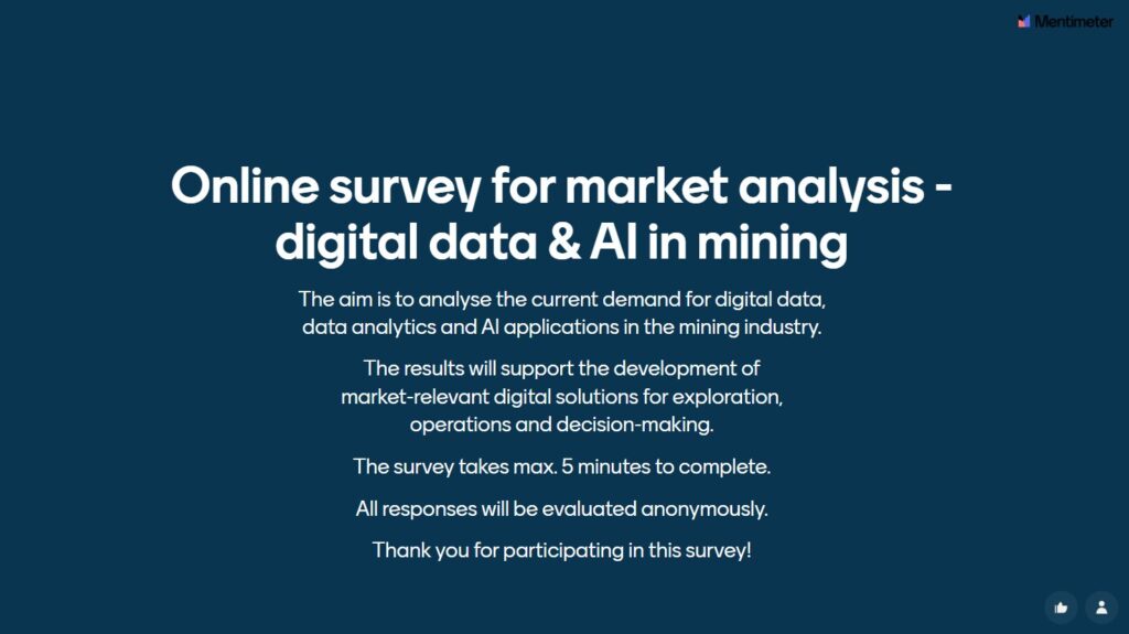 The aim is to analyse the current demand for digital data, data analytics and AI applications in the mining industry. The results will support the development of market-relevant digital solutions for exploration and decision-making.