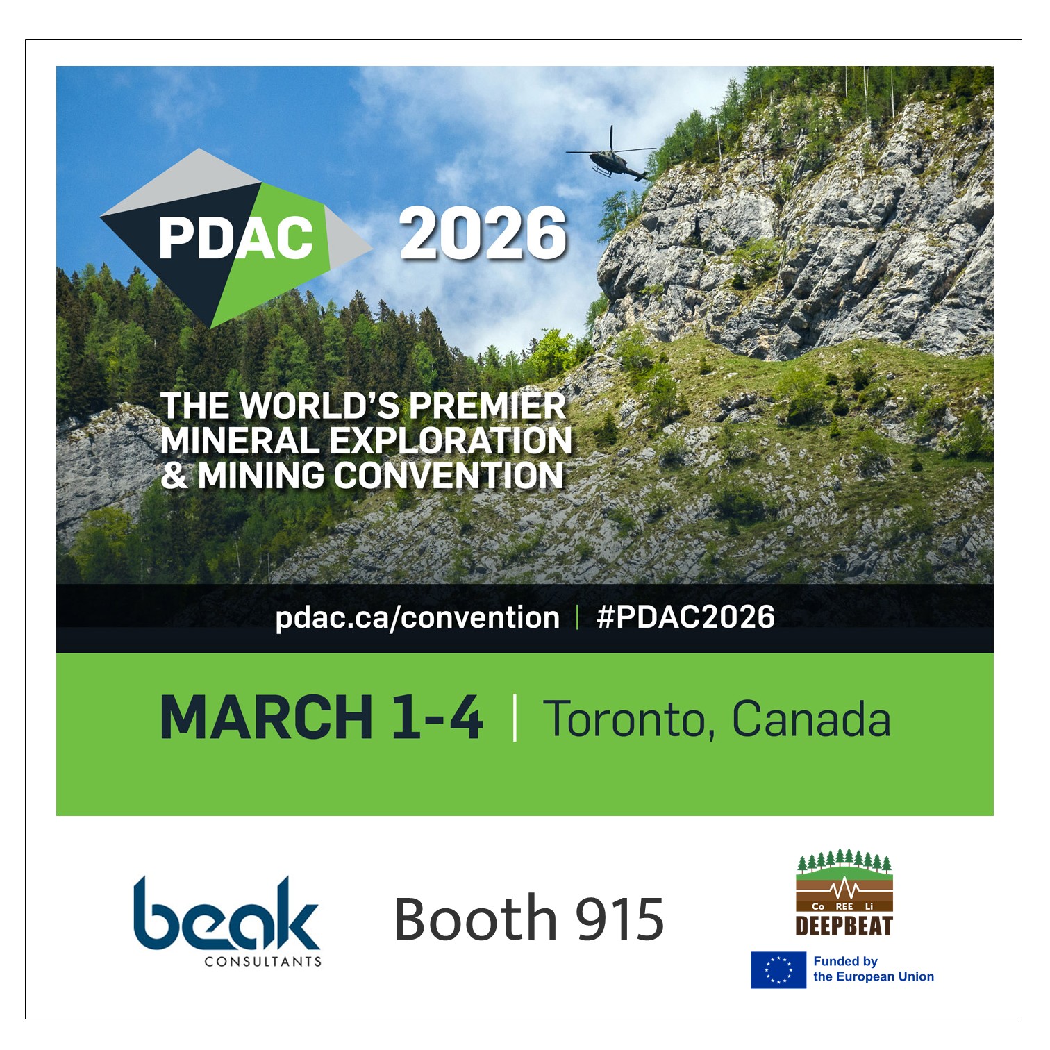 Beak Consultants GmbH is heading back to PDAC 2026 Convention! Join us at the Trade Show at the MTTC in Toronto (Canada) from 1st until 4th March 2026 at booth 915 to discuss on how mining projects are being shaped today – from early-stage exploration to responsible mining and rehabilitation. In addition, we are showcasing the Horizon Europe project “DeepBEAT – Deep Exploration Boosted by Advance Exploration Technologies”, funded by European Union at our booth.